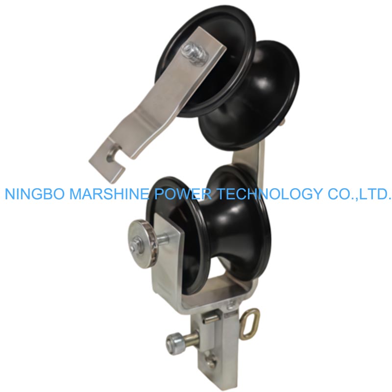 تم تصميم بكرات تثبيت كابل MARSHINE المصنوعة من ألياف OPGW بحزم متينة مطلية بالنايلون أو البوليمر ومحامل محكمة الغلق لتتحول بسلاسة، مما يقلل من خطر تآكل الكابل أثناء احترام التوتير.