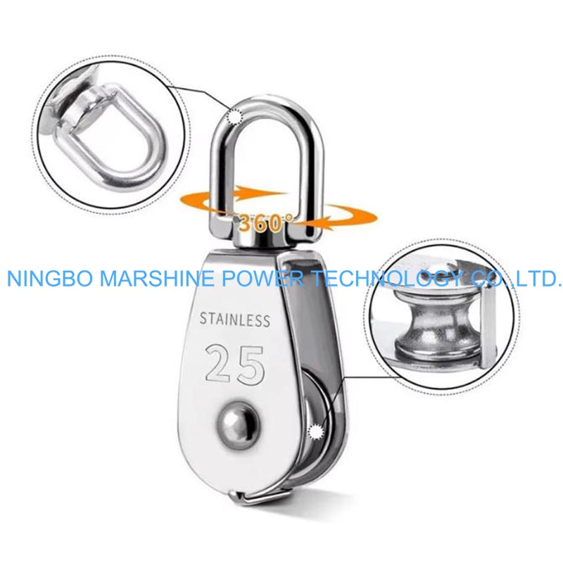 تتميز بكرة الحبل التي تتميز بسلسلة الحبل القوية ، يمكن أن تحمل بكرة حبل خارق سلسلة خطاف Marshine ما يصل إلى 10 أطنان من الوزن ، وكرة مناسبة للغاية لمهام الرفع الثقيلة في الصناعات مثل البناء والتصنيع والخدمات اللوجستية. يعتمد خطاف البكرة لحلقة الرفع تصميمًا ذاتيًا لضمان السلامة أثناء الاستخدام. تتكون حلقة رفع حبل سلك خطف سلسلة خطاف Marshine من الفولاذ عالي القوة ولديها قدرة ممتازة على الحمل. يبلغ قطر البكرة 6 بوصات ، مصمم لتقليل احتكاك الحبال أو الكابلات عند المرور عبر الحزم. يتكون حصفها من مواد عالية الجودة مقاومة للارتداء ، والتي يمكن أن تزيد من عمر الخدمة. توفر هذه الوظائف مرونة أكبر عند معالجة الأحمال ، وخاصة في المساحات الضيقة.