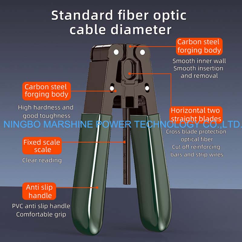 إن شركة MARSHINE باعتبارها موردًا صينيًا لأدوات تركيب خطوط الاتصالات الكبيرة، تمتلك 20 عامًا من الخبرة لتزويد المستخدمين في جميع أنحاء العالم بأدوات إعداد كابلات الألياف الضوئية الفعالة وبأسعار تنافسية. كماشة تجريد كابلات الألياف الضوئية القياسية من MARSHINE هي أداة تجريد كابلات الألياف الضوئية القياسية، والتي تستخدم للتعامل مع أعمال تحضير نصف الألياف الأساسية بسهولة.